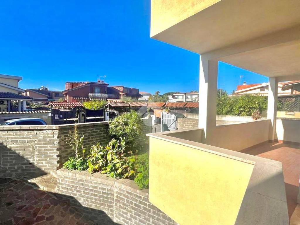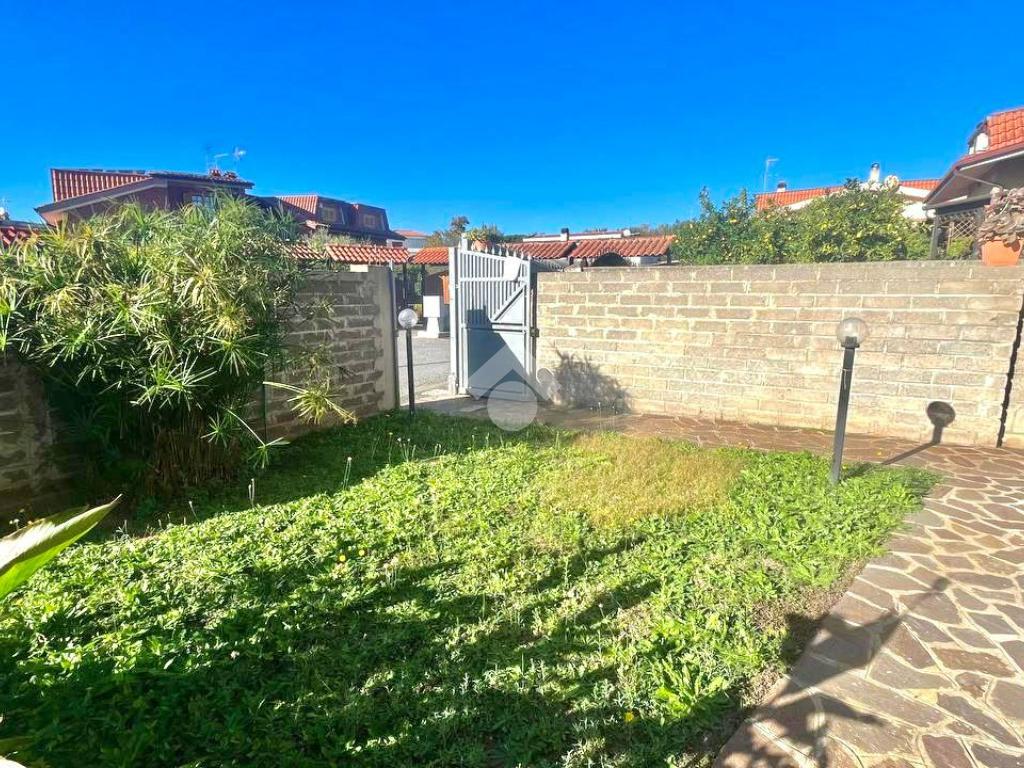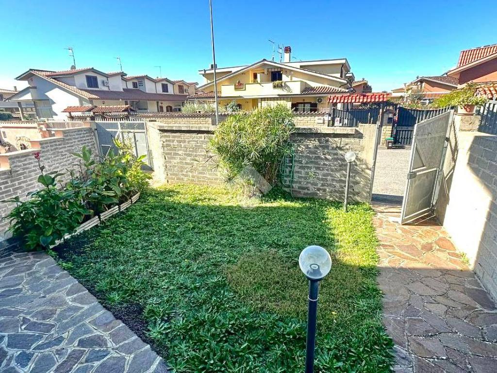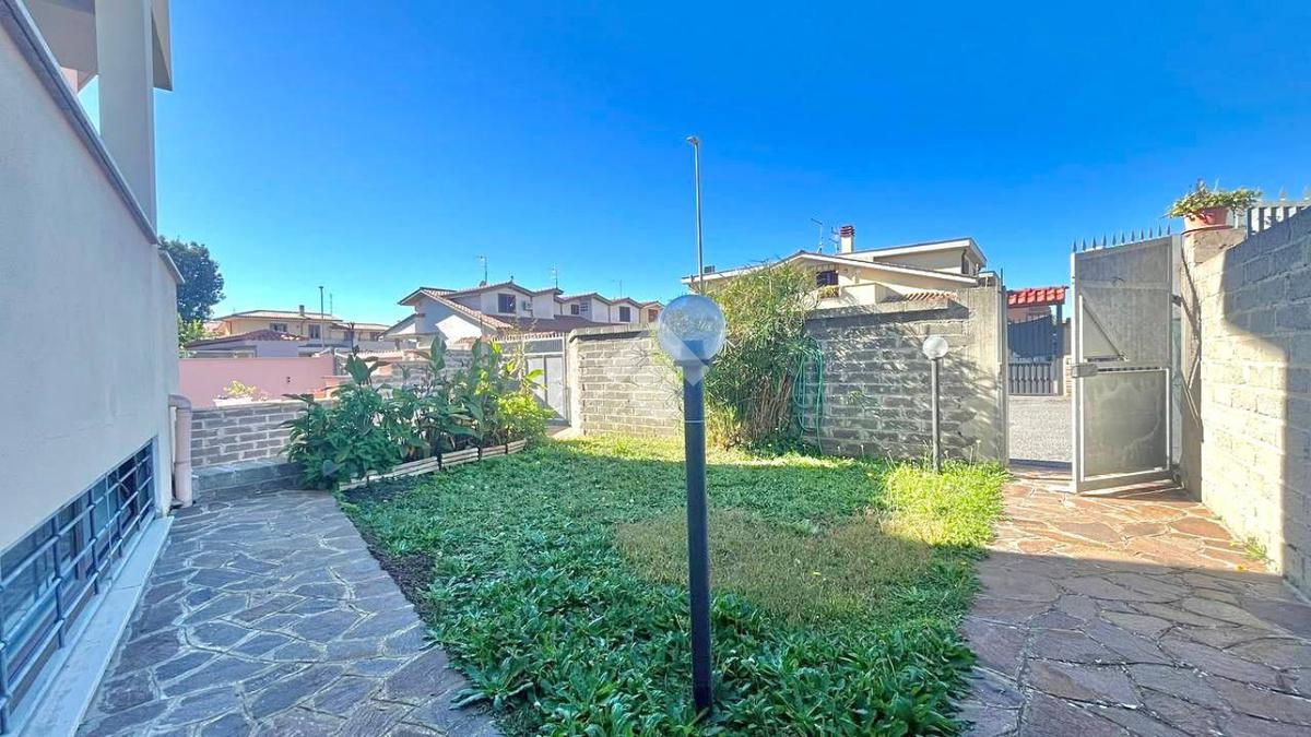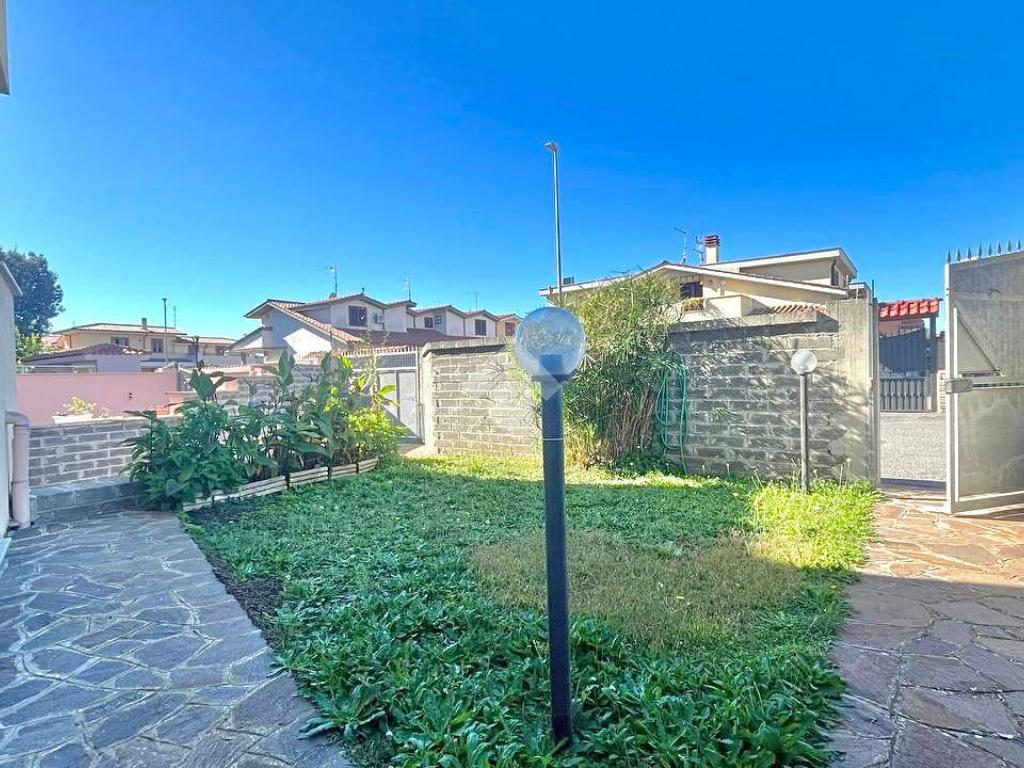 Villa quadrifamiliare in vendita a Ladispoli di circa 200 mq, si accede alla proprietà tramite un giardino privato di circa 100 mq, in parte pavimentato, ideale per momenti di relax all’aperto.