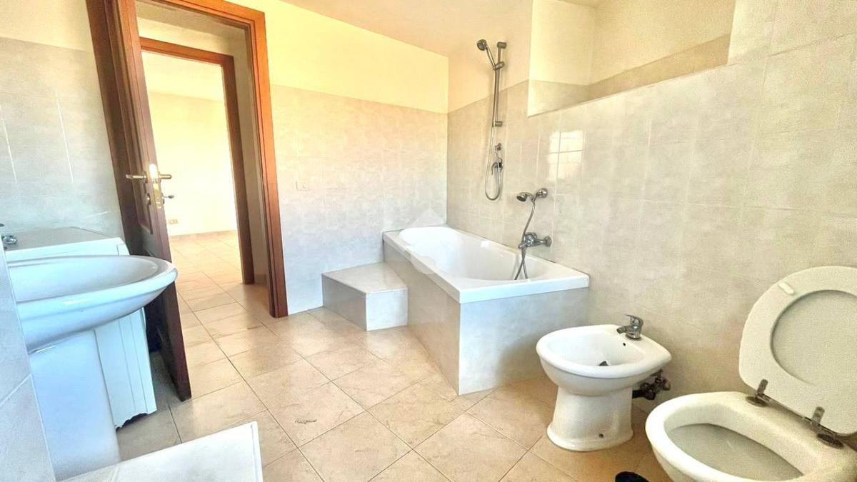 Salendo al piano primo si sviluppa la zona notte, composta da tre camere da letto, di cui due con uscita su balcone, e un bagno finestrato dotato di vasca.