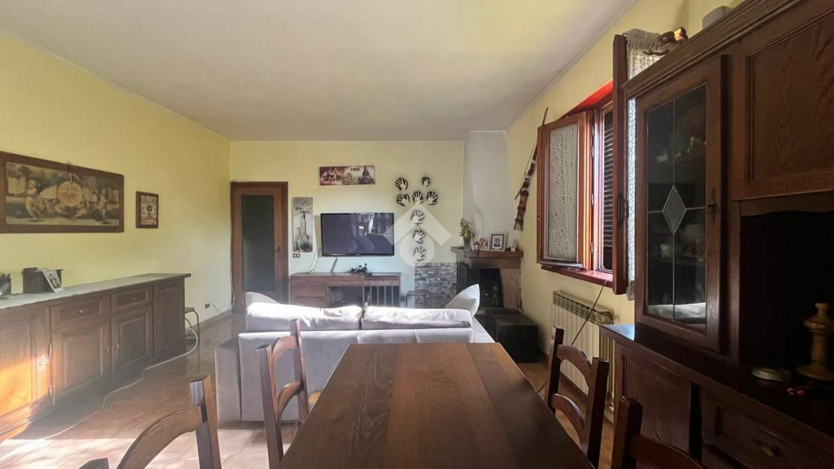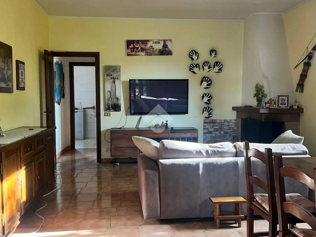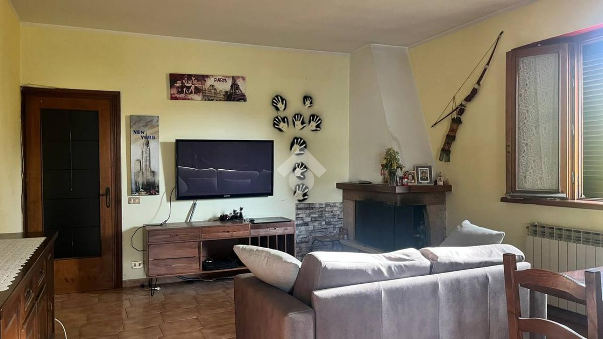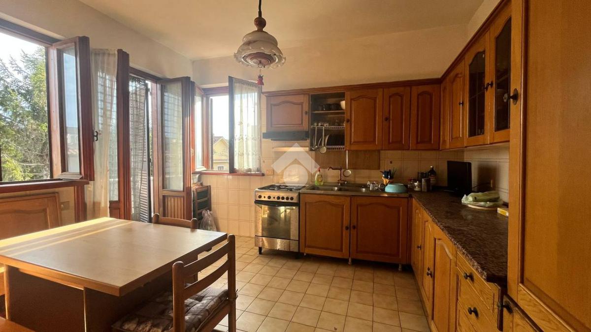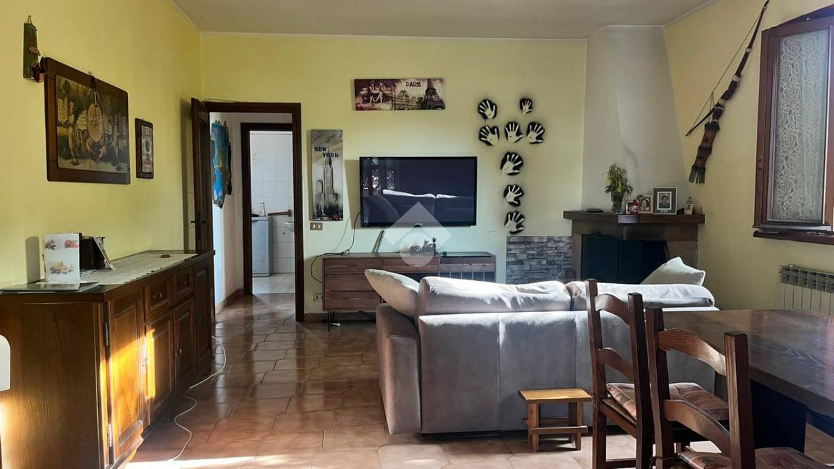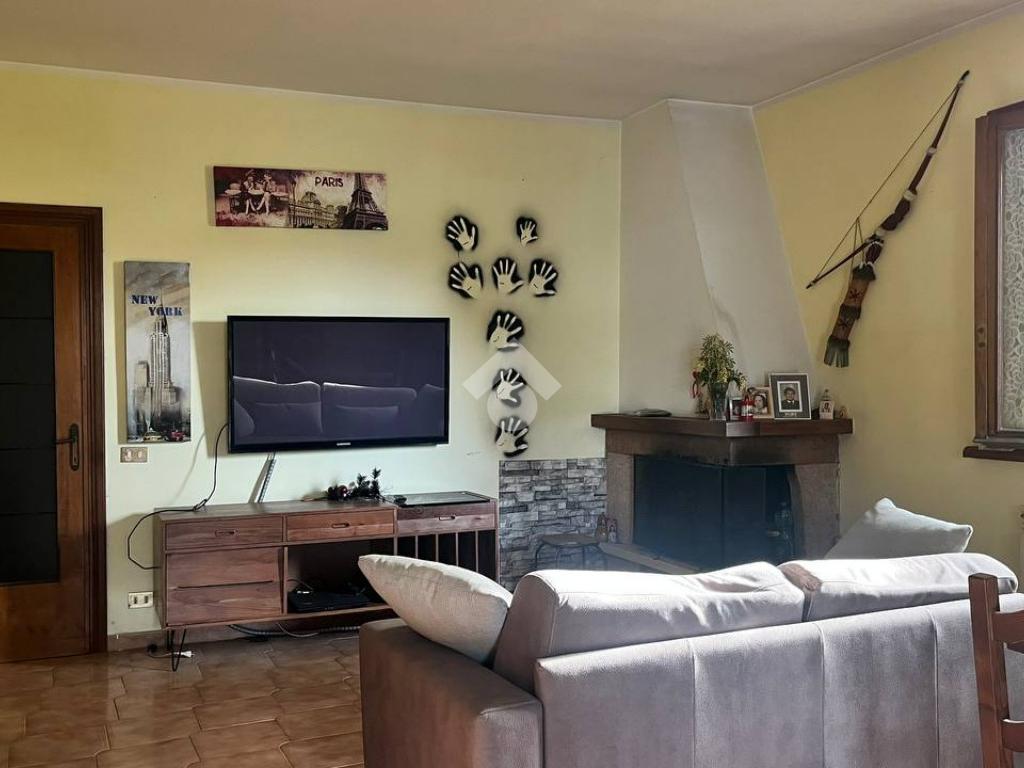 Il piano terra si apre su un ampio soggiorno con camino, ambiente conviviale, perfetto per le serate invernali, affiancato da una cucina abitabile con accesso al balcone e da un bagno finestrato con doccia.